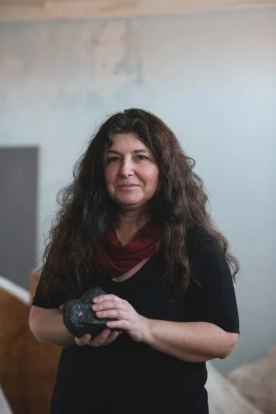 přírodního i městského prostředí. Citlivým čtením v paměti konkrétních míst odkrývá silná témata, jež prostřednictvím širokého spektra materiálů i specifických technik zviditelňuje k našemu uvědomění. Historický charakter Synagogy na Palmovce a její okolí spoluutváří podnětné prostředí, v němž mohou plně zaznít některé z dlouhodobě řešených obsahů prací autorky, jako například čas prostoru, vrstvy paměti, transformativní procesuálnost, ultraprostory či mystérium osobní proměny.